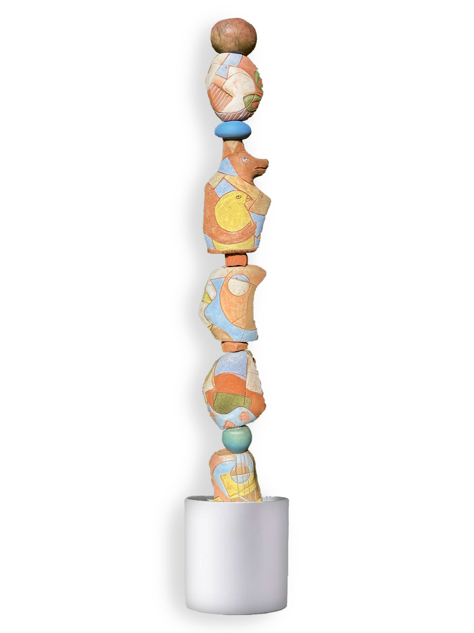 This ceramic totem promises to be a delightful centerpiece, radiating both ancient wisdom and the lively, playful essence that defines Marc Zimmerman's exceptional style. It stands as a testament to the timeless connection between humanity and nature.